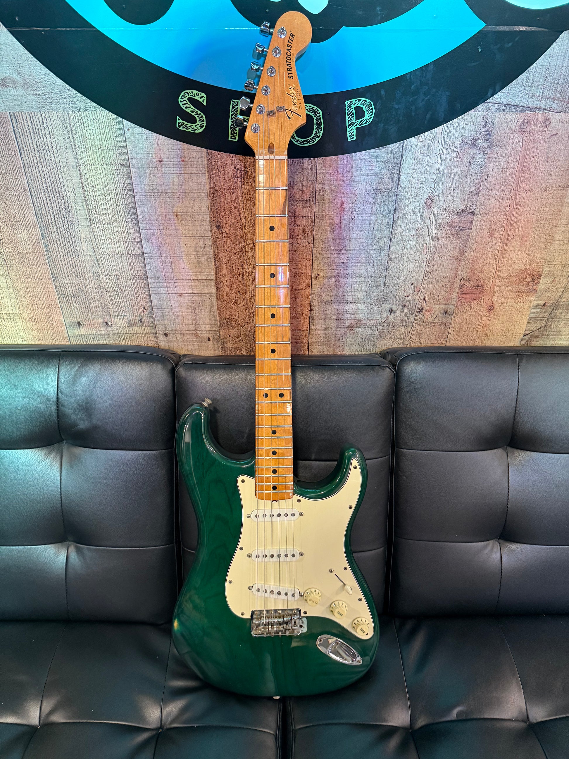 This green Strat’s got that “plays blues in a smoky bar but could also teach algebra” energy. A little worn, a little wise, and guaranteed to make your amp tell the truth.