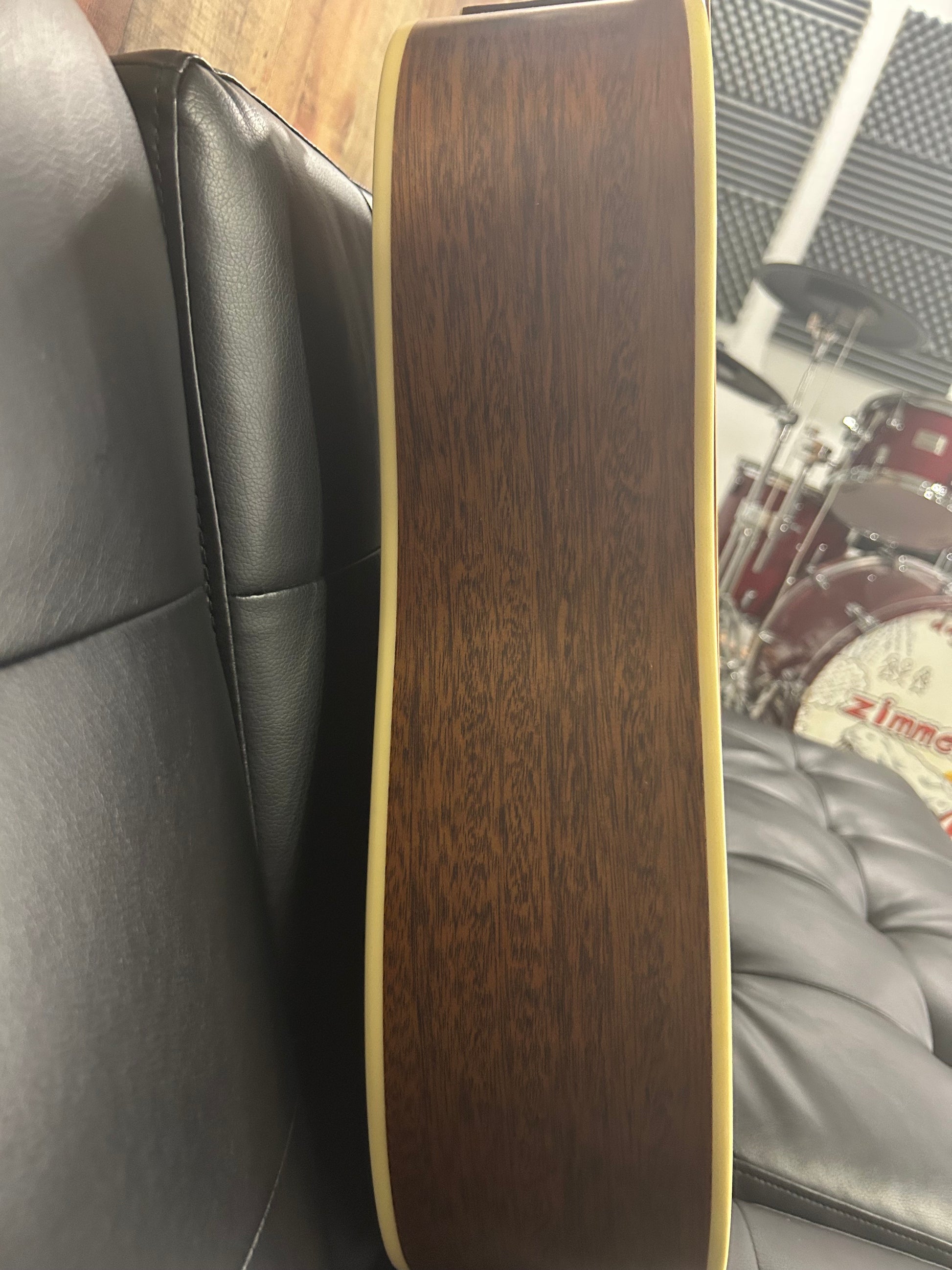 With a warm, full-bodied tone and a finish as natural as my love for mowing perfectly straight lines, this beauty’s ready for campfire singalongs, porch jams, or your next “impromptu” living room concert.