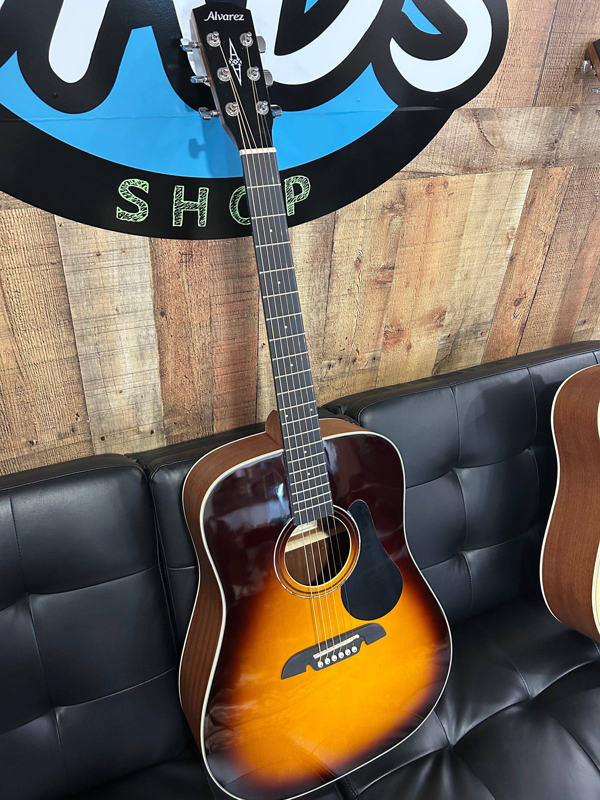 The Alvarez Regent Series is a high quality entry-level guitar line designed to provide super value instruments with many features and specifications you find in pro-level Alvarez models. Components such as our bi-level rosewood bridge, scalloped bracing and PPS synthetic bone nut and saddle, work together to get the best tone and response possible. The sound is open and full, and the guitars have been made to respond well, making them rewarding to play. Regent Series has also been designed with the student in mind and has a slightly slimmer neck profile and nut, making it very easy to hold and fret. The guitars have a classic look and are made from spruce and mahogany, or spruce and rosewood. Dreadnoughts, Folk/OM's and Classical acoustic and acoustic electric models are available. Every Regent Series guitar comes with a deluxe, 15mm DuoFoam padded gig bag. Alvarez Regent Series - The Entry-level guitar. Redefined.