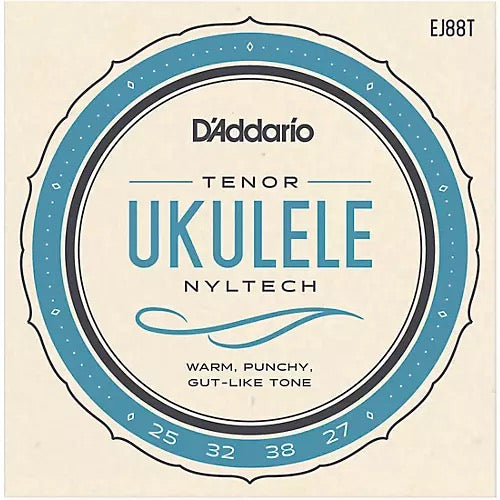 D'Addario EJ88T Nyltech Tenor Ukulele string sets are designed for use with tenor ukuleles utilizing D'Addario's exclusive Nyltech material. This set is optimized for standard GCEA tuning. Developed in cooperation with Aquila, D'Addario Nyltech strings are an exclusive combination of materials designed to deliver an optimal combination of warm, yet punchy tone, comfortable playability, precise intonation and tuning stability not found in other ukulele strings.