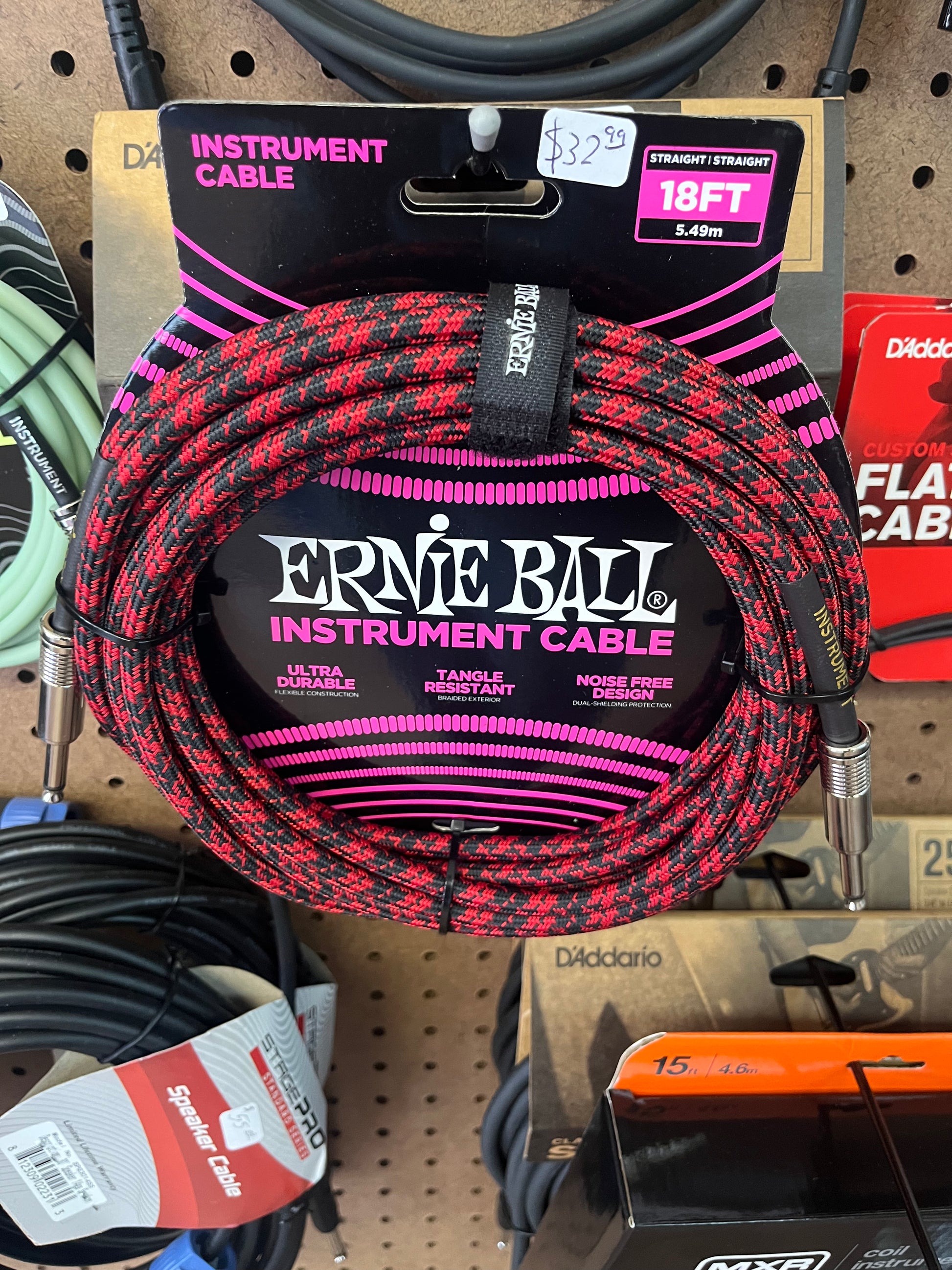 Ernie Ball Braided 18ft Instrument Cable Red/Black