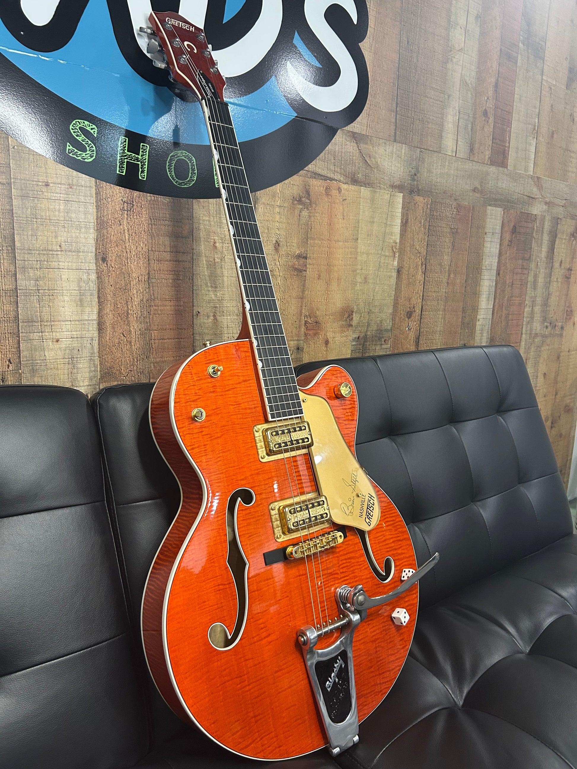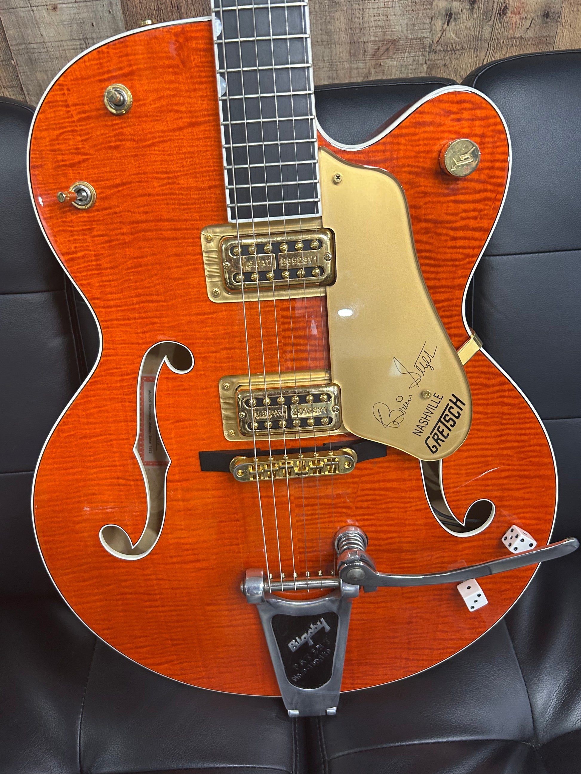 That fiery orange finish, gold hardware, and Bigsby trem scream vintage swagger. It’s bold, it’s flashy, and it sounds like it just kicked the door open to your local juke joint.