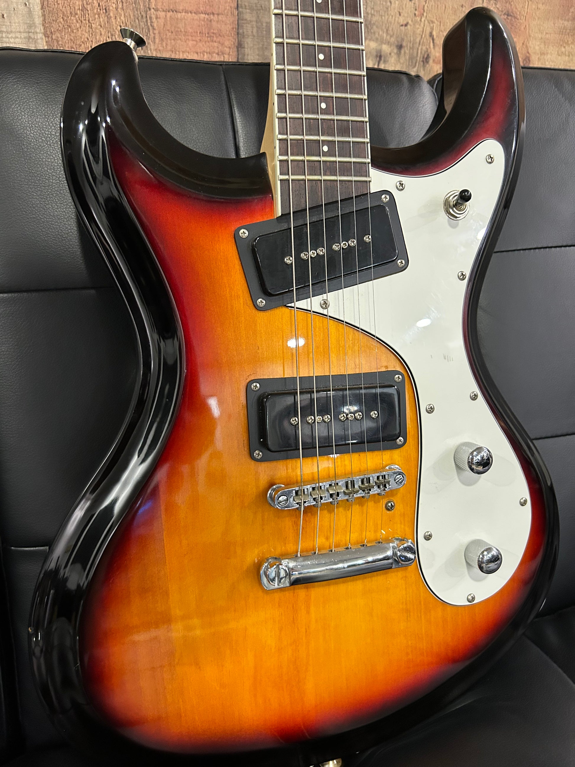 With that sunburst finish, chrome accents, and unmistakable retro vibe, it’s got the look of a guitar that’s seen some smoky bars and questionable haircuts in its day. Plug it in, and it doesn’t just play notes — it tells stories.