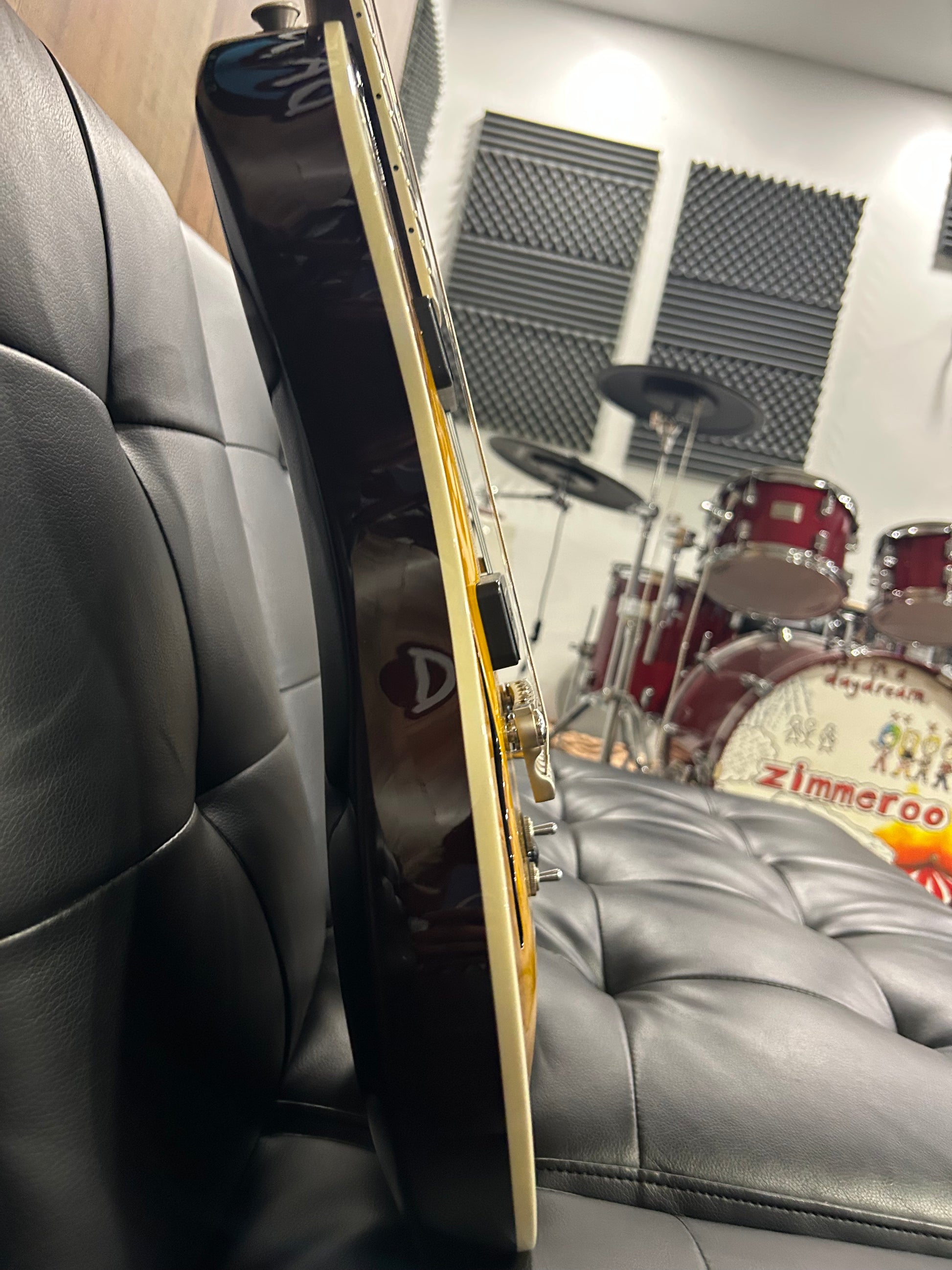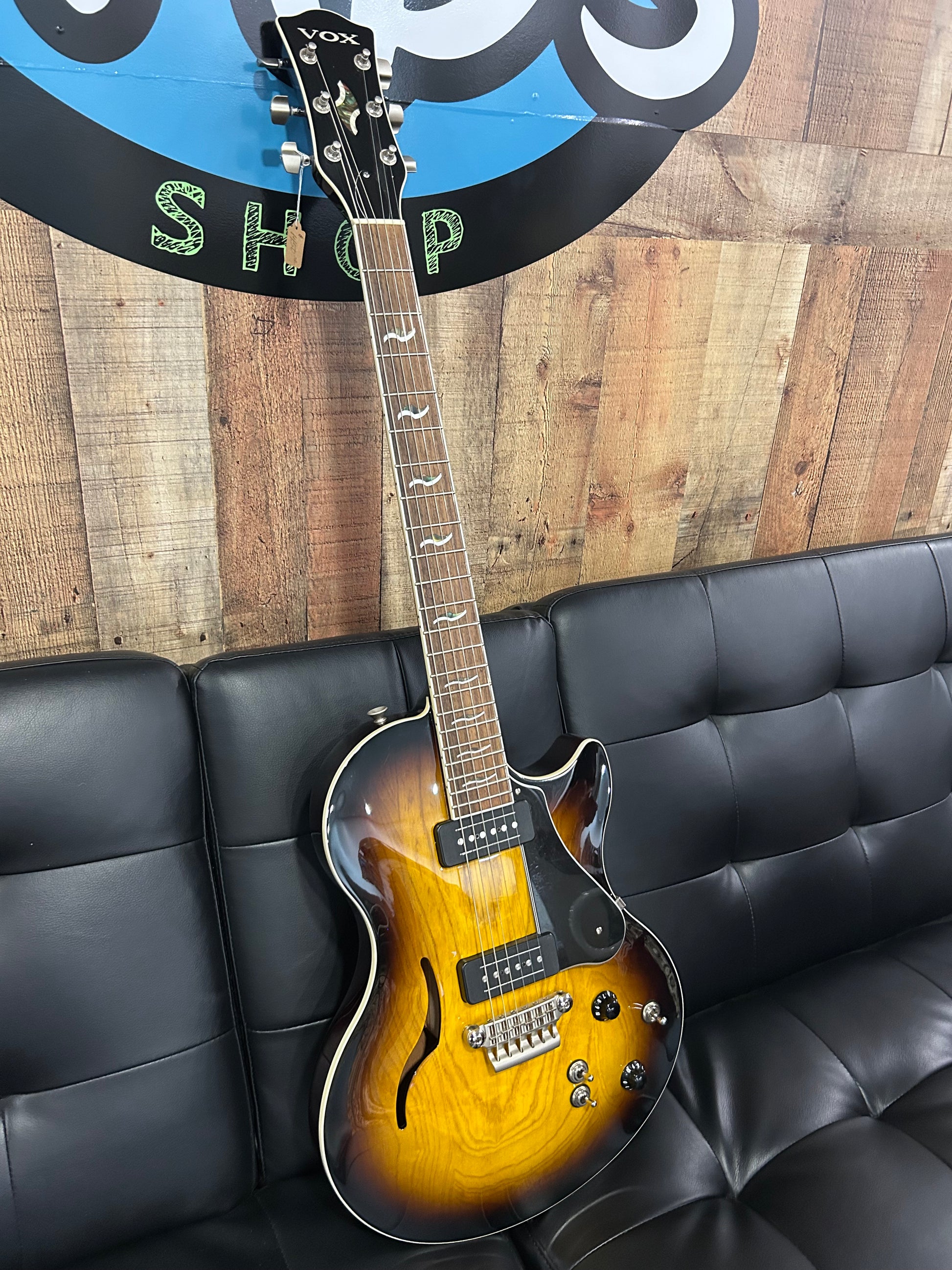 That sunburst finish is pure class, the kind of tone wood that makes chords sound like velvet. It’s equal parts sophistication and mischief — the kind of guitar that says, “I solo in style.”